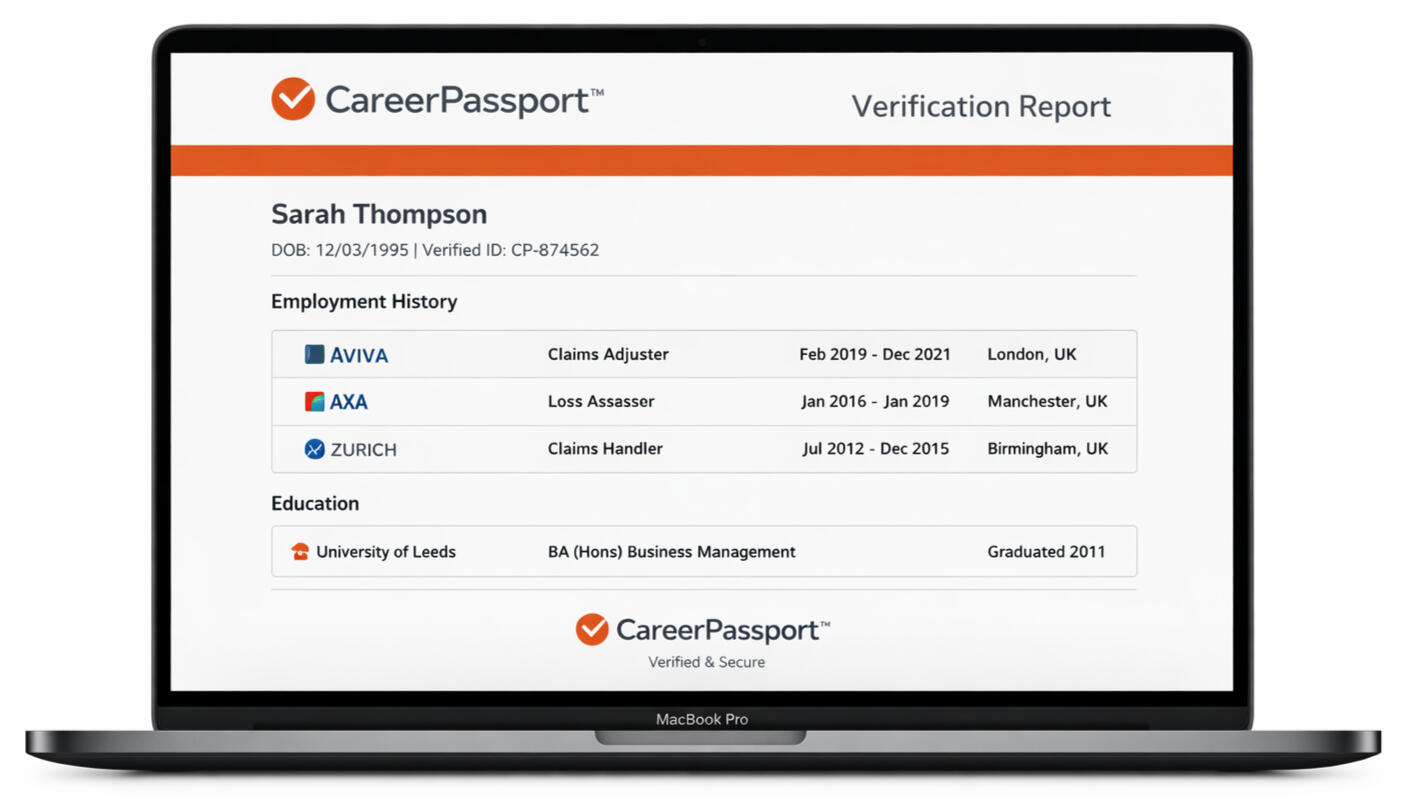 CareerPassport provides a structured, independently verified record of employment and education history that can be securely reused across roles.